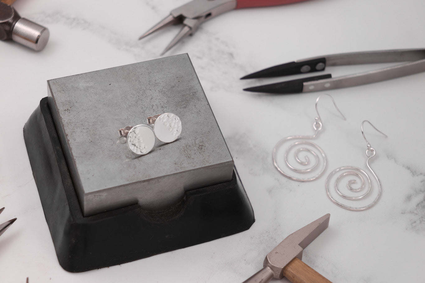 Byddwch yn dechrau’r dydd drwy greu clustdlysau styd gyda gwead hyfryd - cewch feistroli’r torri, creu gwead, sodro a sgleinio. Yna, yn yr awr olaf, byddwn yn defnyddio techneg cyflym iawn i greu clustdlysau crog cain gan berffeithio eich sgiliau siapio a defnyddio gefail.