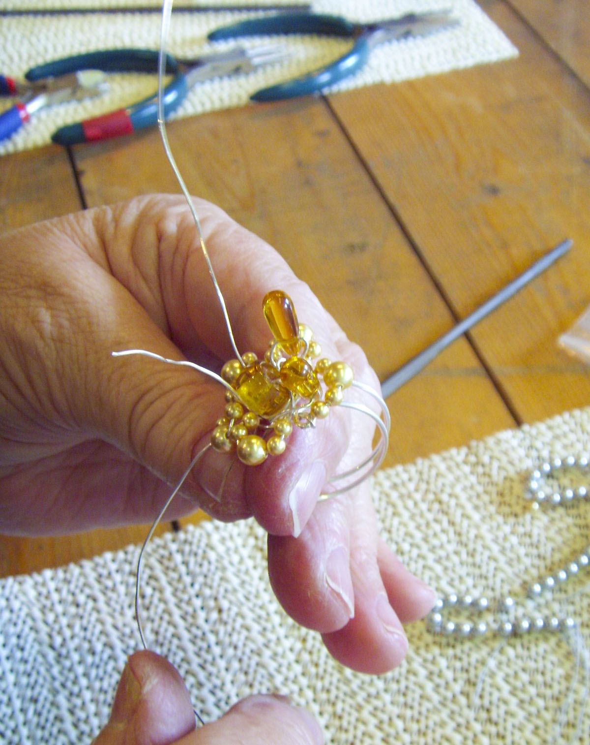 Sylwch nad cwrs sy’n defnyddio llinyn mwclis yw hwn - byddwn yn gweithio gyda gwifren i adeiladu siâp a ffurf.