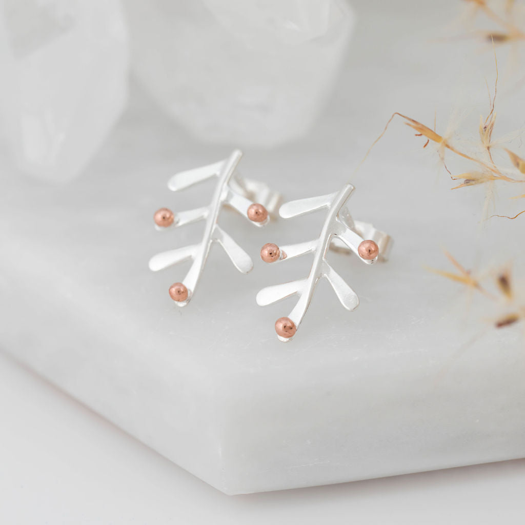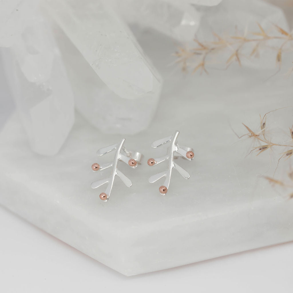 Mae'r styds hyn wedi'u hysbrydoli gan lethrau bryniau Gogledd Cymru sydd wedi'u gorchuddio â rhedyn.