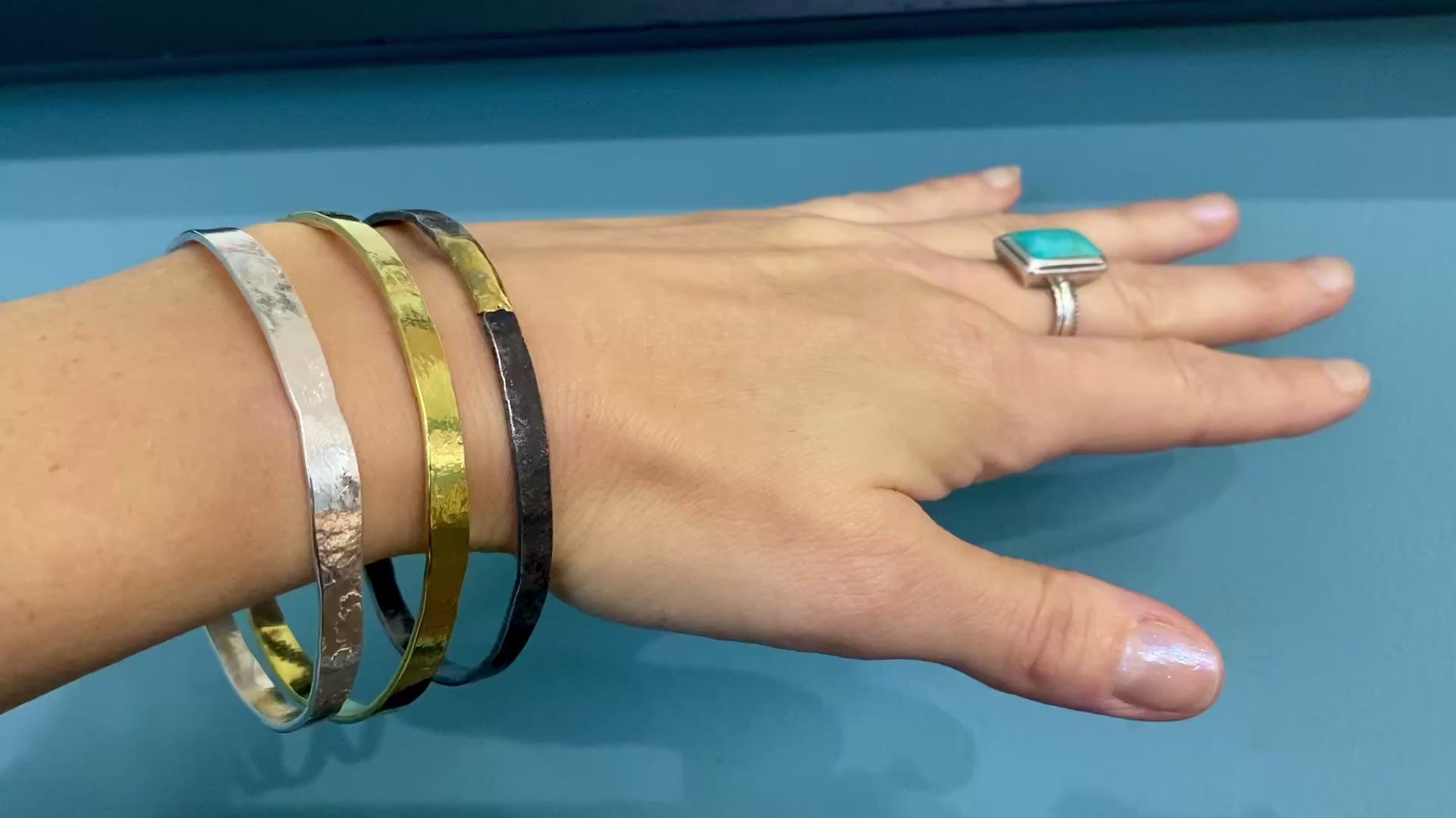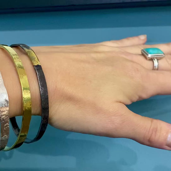 From the 'Amrwd' (meaning Raw) collection. These bracelets are hammered with texture which brings out the beautiful organic nature of the metals.