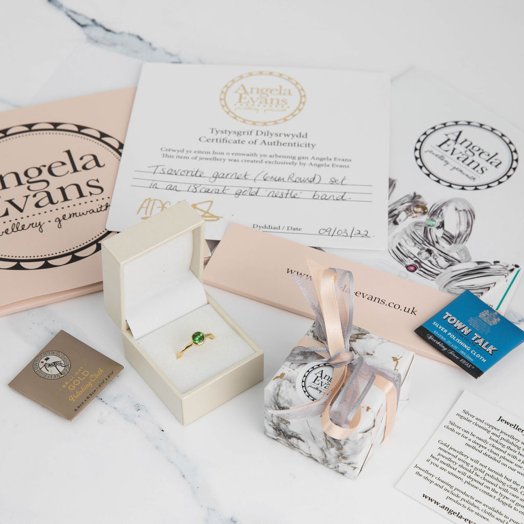 The finished, hallmarked ring arrives gift wrapped in one of our signature pearly white boxes. Delivery is made by a fully insured Royal Mail postal service. We notify you on day of dispatch so you can expect your item the following day. If you have any further questions about this product or cannot see exactly what you are after then please get in touch as bespoke sizes and stone choices are available by request.
