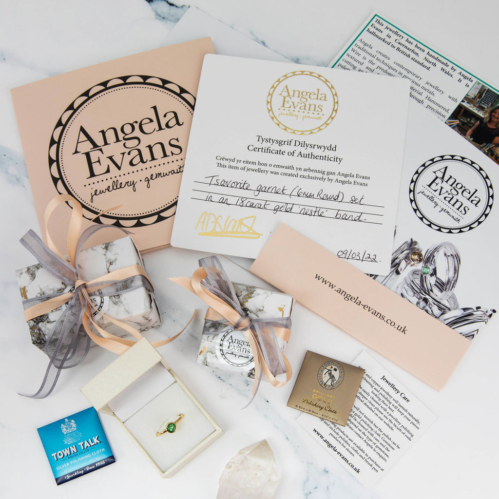 The finished, hallmarked ring arrives gift wrapped in one of my signature pearly white boxes. Delivery is made by a fully insured Royal Mail postal service. We notify you on day of dispatch so you can expect your item the following day. If you have any further questions about this product or cannot see exactly what you are after then please get in touch as bespoke sizes and stone choices are available by request.