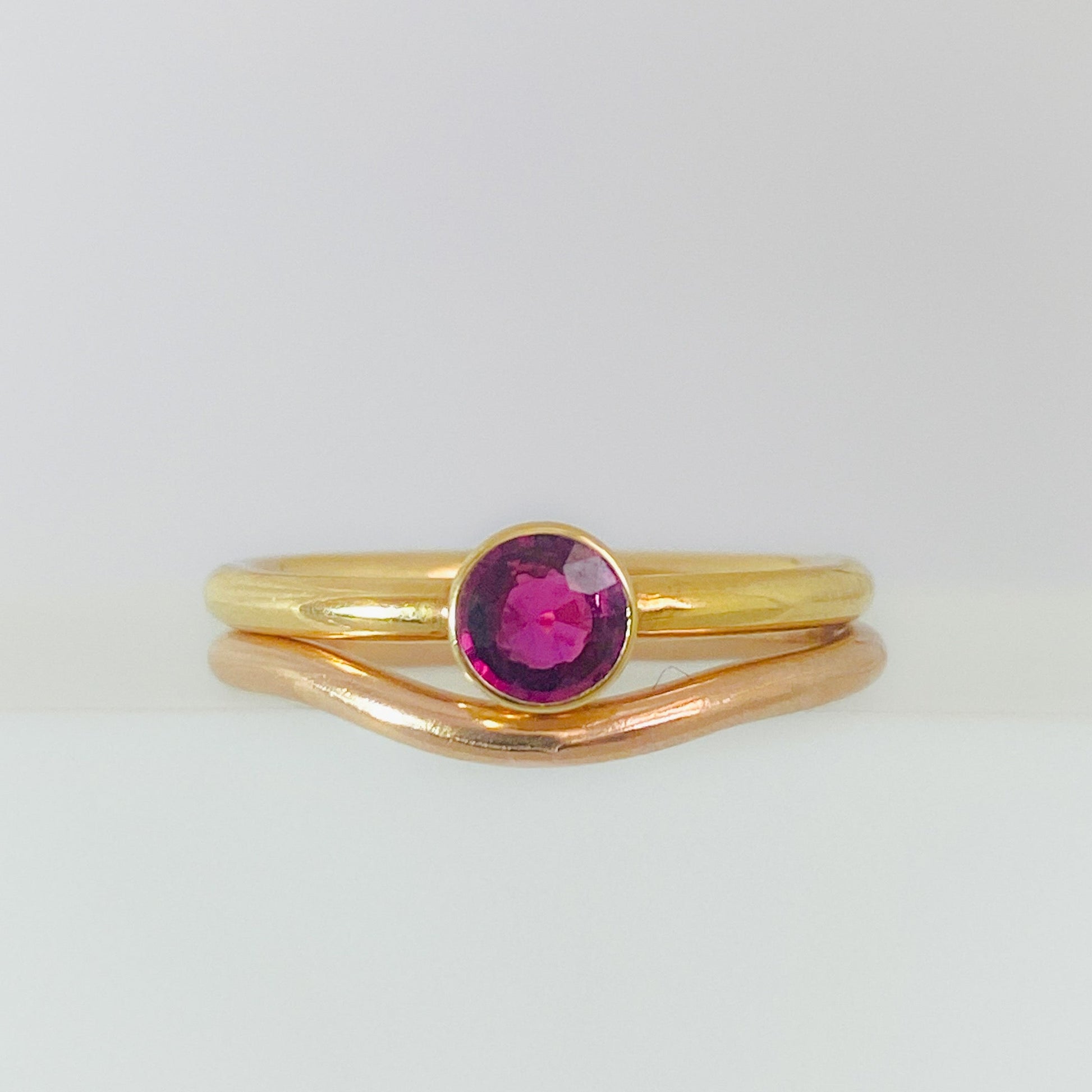 As an example we have pictured this wedding band with a contrasting 5mm Round Ruby Nestle engagement ring in yellow gold to show how it can look paired with another ring. Please note that this listing is for the rose gold wedding band only, engagement and eternity rings are purchased separately.